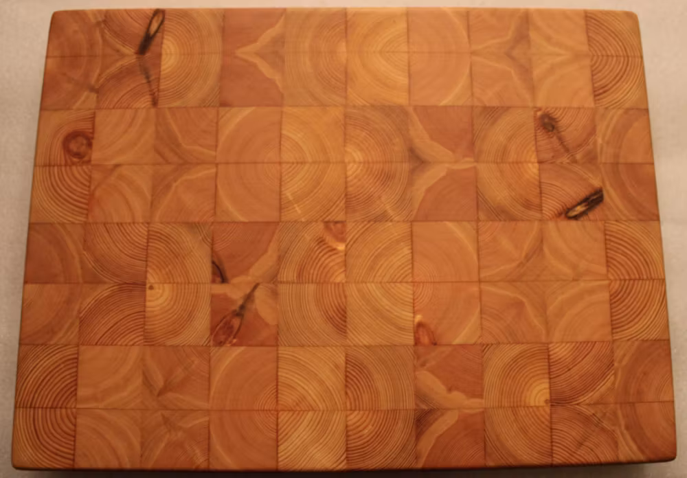 Denna ändträskärbräda av furu är 45 mm tjock