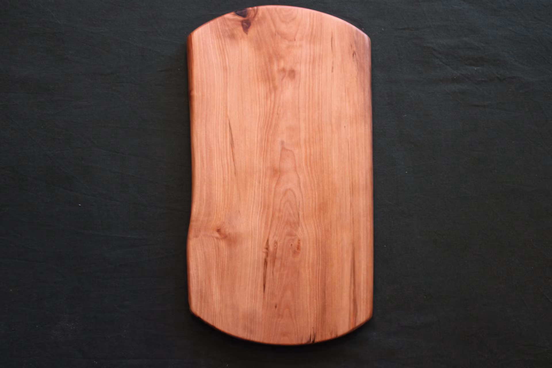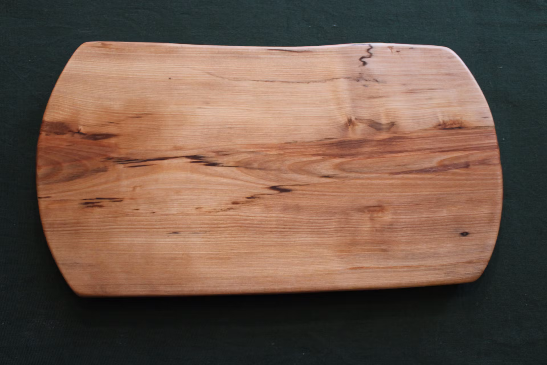 Serveringsfatet har en avfasning på kortsidorna för att få lättare grepp medans långsidorna är trädets naturliga kant utan bark. Det är behandlat med livsmedelsgodkänd skärbrädeolja och skärbrädevax vid leverans.
