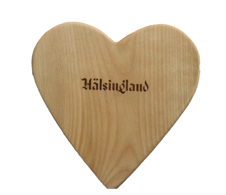 Vi är stolta över att presentera vår helt nya serie av hjärtformade smörgåsbrickor i björk som har fått texten Hälsingland ingraverad för att visa vår kärlek till vårt vackra landskap!