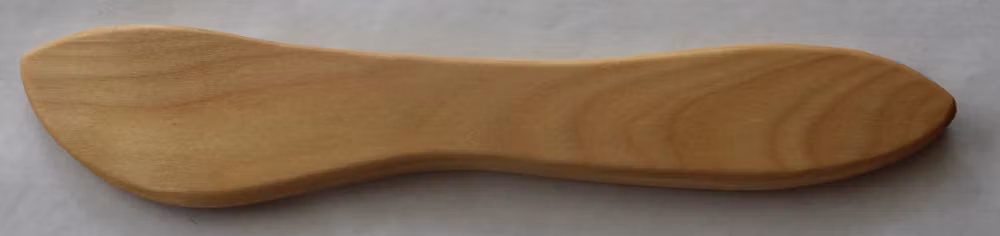 När smörkniven är färdig får den samma omsorg som era skärbrädor: ett bad i skärbrädeolja och en avslutande vaxning som skyddar träet och ger en len, matt yta.