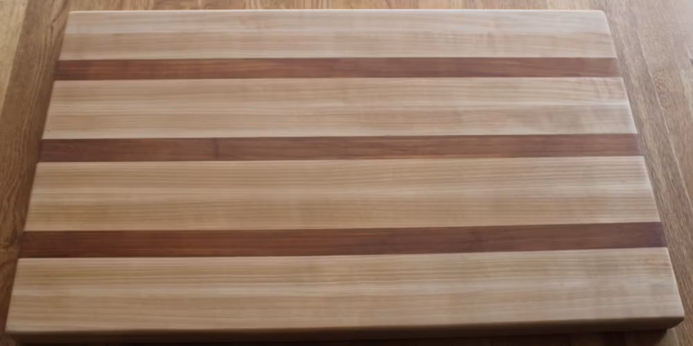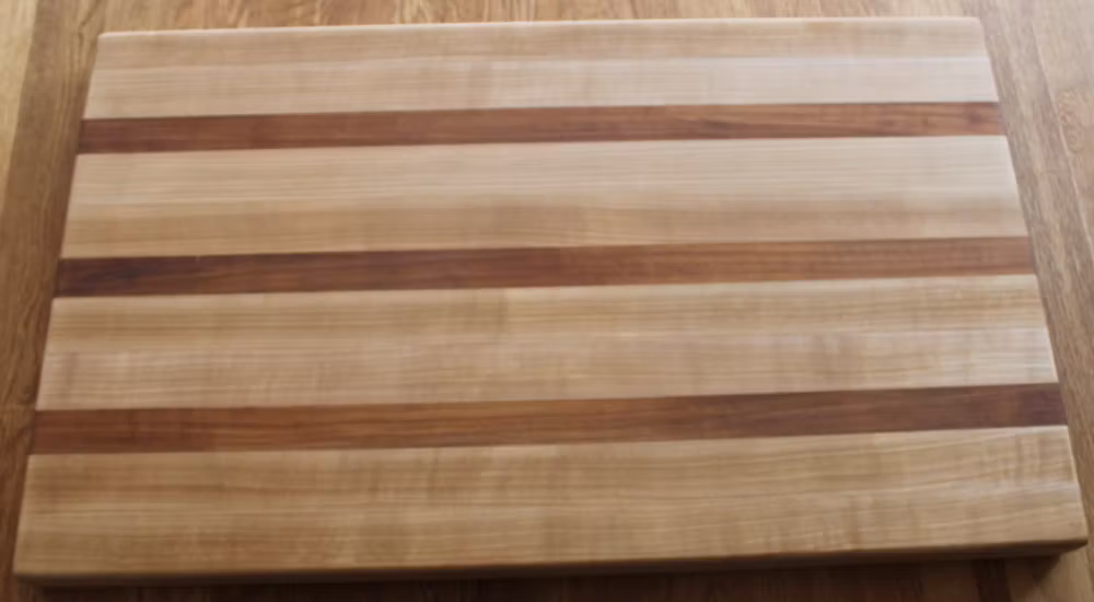 Stor randig skärbräda i björk och mahogny – 59x35 cm